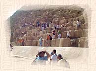Przed wejściem do wnętrza Wiekiej Piramidy. Cezary Stachoń, Lucyna Łobos, Iwona Stankiewicz. |