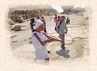 "Czuję się tutaj tak , jakbym wróciła do siebie?" . Lucyna Łobos przy Piramidzie Cheopsa. |
